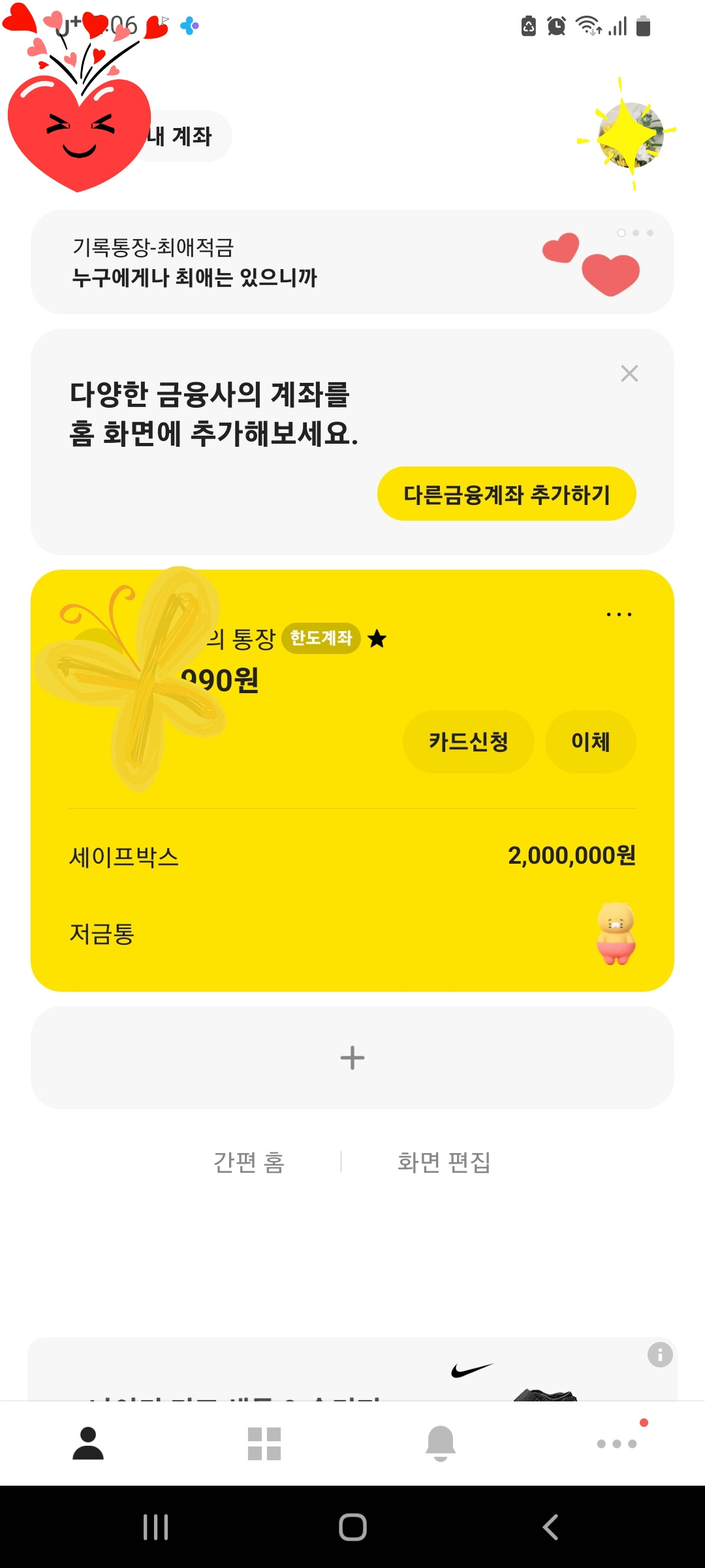 세이프박스도 추가해서 입출금통장에 있는것을 세이프박스로 보냈어요.
